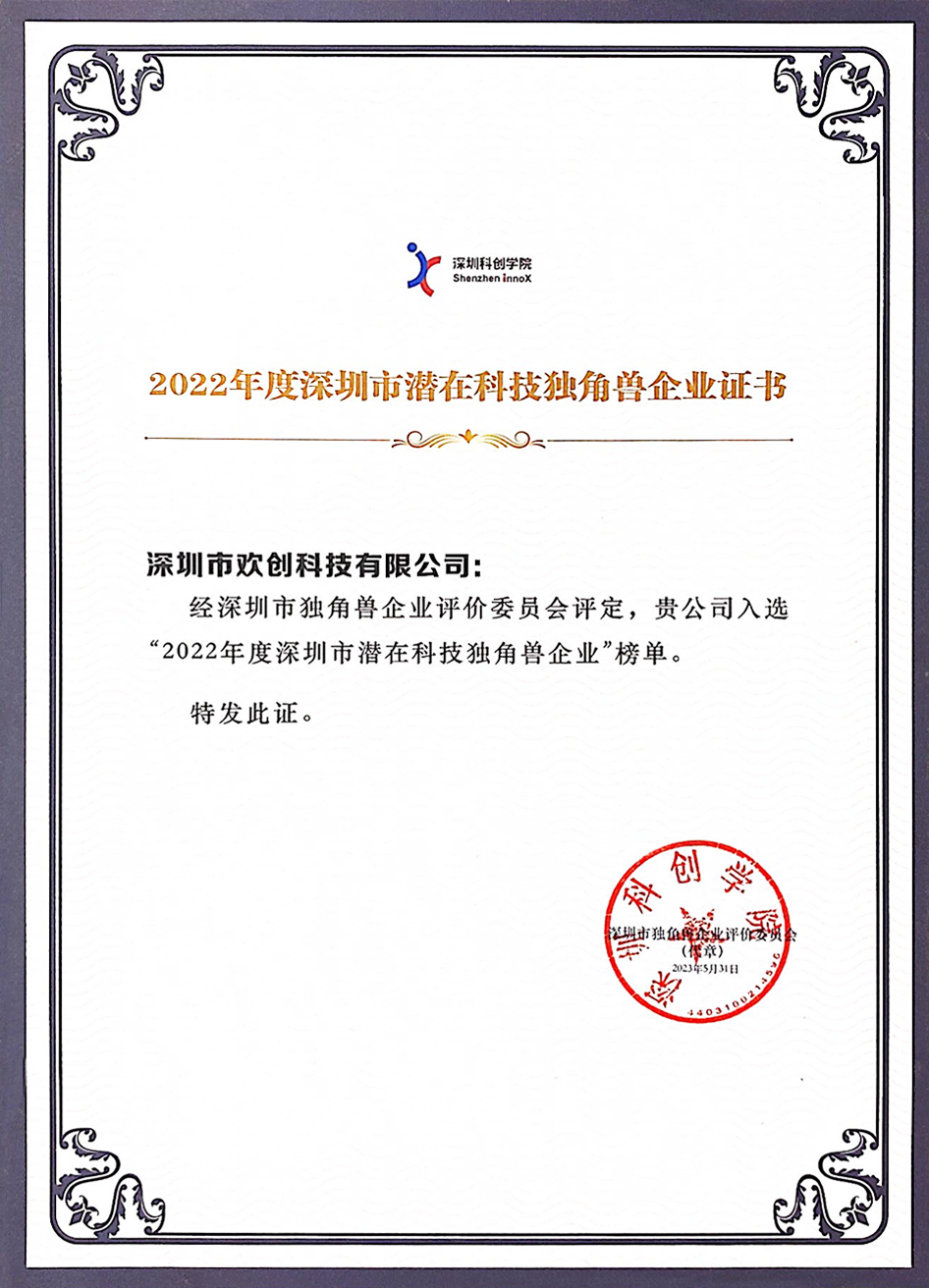 歡創(chuàng)科技獲評“2022深圳市潛在科技獨角獸企業(yè)”