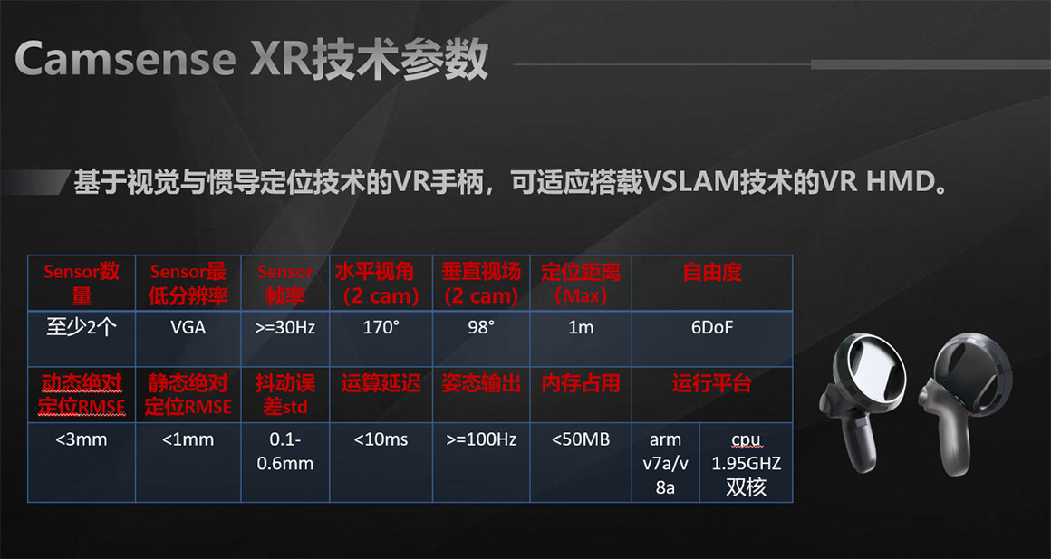 除此之外,在硬件表現(xiàn)上,歡創(chuàng)也同步推出了基于視覺與慣導(dǎo)定位技術(shù)的VR手柄,可適應(yīng)搭載VSLAM技術(shù)。憑借在VR/AR領(lǐng)域多年不斷的技術(shù)研發(fā)投入,當(dāng)前歡創(chuàng)已經(jīng)晉身國內(nèi)唯一一家第三方inside-out視覺6DOF手柄供應(yīng)商,并與諸多一線品牌達(dá)成合作,提供基于VR/AR的6DOF手柄空間定位產(chǎn)品。未來,Camsense將憑借其VR追蹤系統(tǒng),成為更大市場(chǎng)的主流參與者。